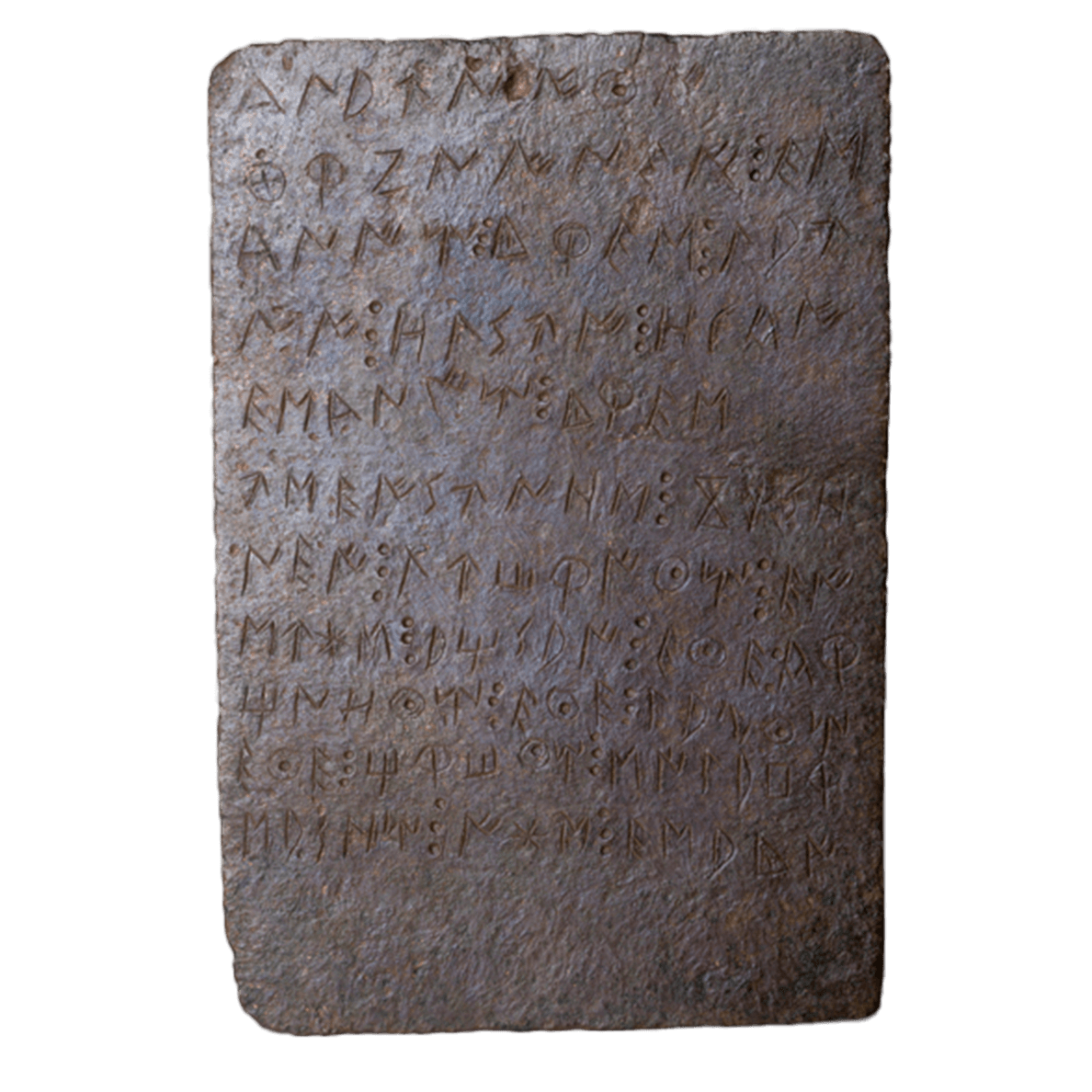 n.º IG 16648 Superficie Materia: aleación de cobre. Altura: 13 cm; largo: 8,8 cm; grosor: 0,1 cm.