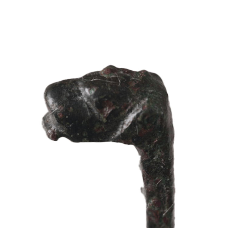 n.º IG 18847 Insula V, casa 4, estancia 11 Materia: aleación de cobre Altura: 3,9 cm; longitud: 6,8 cm; grosor: 0,2 cm.