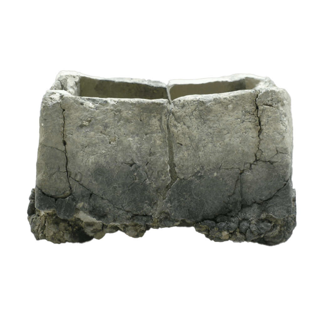 n.º IG 9731 Insula I, casa 1, estancia 8 Materia: cerámica Altura: 8 cm; Ø máximo y borde: 40,2 cm; Ø base: 20 cm. Sellos: altura: 2,6 cm; longitud: 7,9 cm.