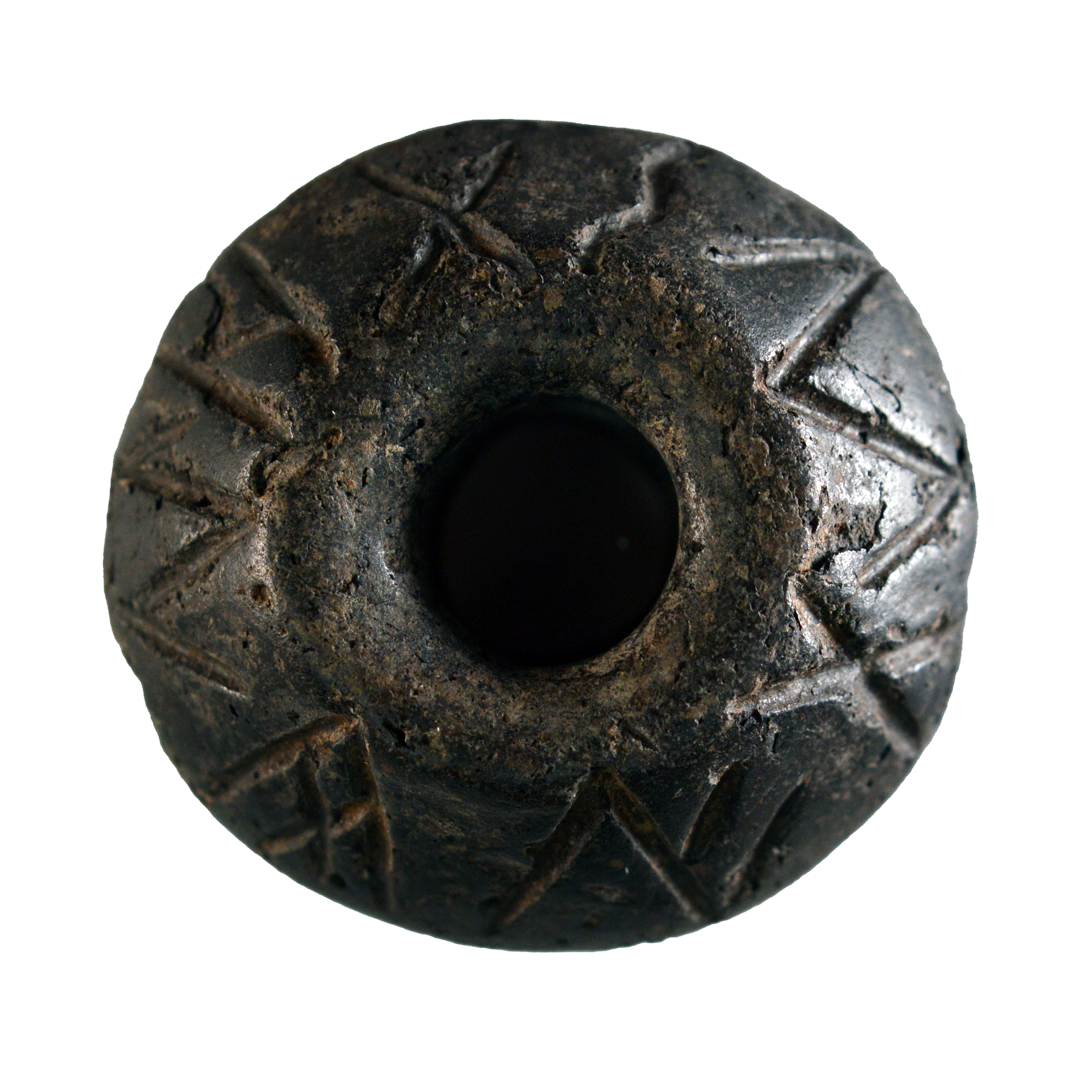 n.º IG 23627 Insula I, casa 6, estancia 3 Materia: cerámica Altura: 2,46 cm; Ø máximo: 3,4 cm; peso: 20,59 g.