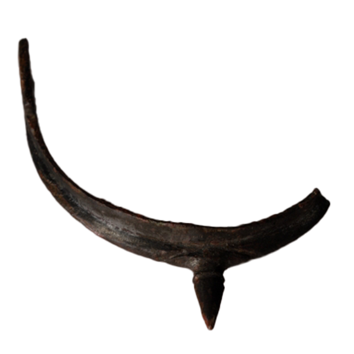 Altura: 7,43 cm x 9,95 cm de longitud; ancho: 3 cm grosor máximo: 0,58 cm. Aguijón: altura: 1,6 cm; Ø 1 cm