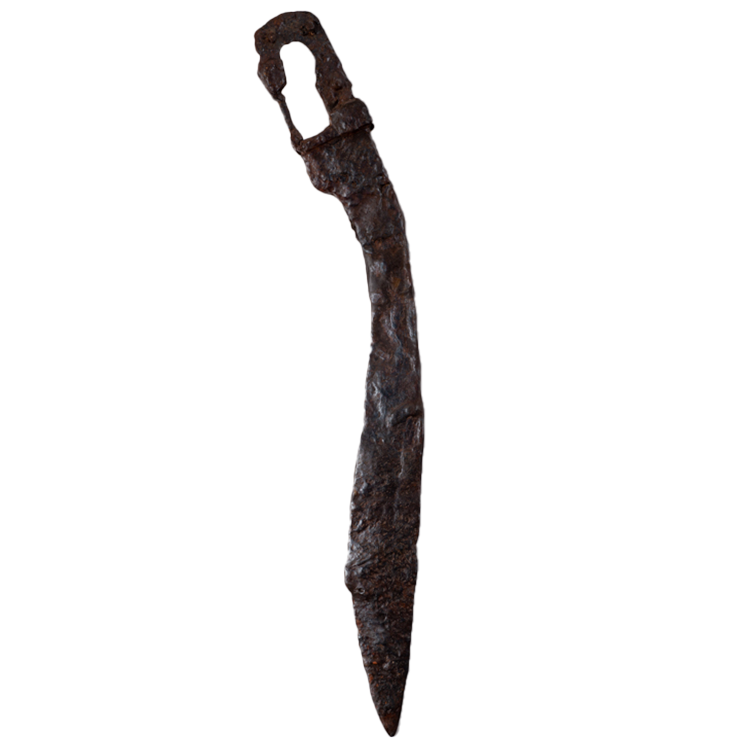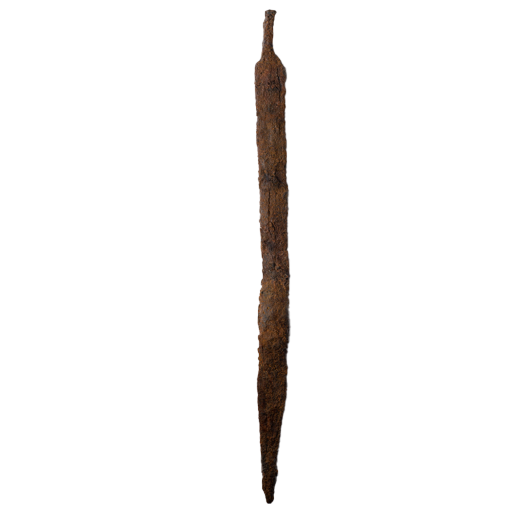 Longitud: 82,5 cm; ancho de la hoja: 5,4 cm; grosor: 0,7 cm. Empuñadura: longitud: 7 cm; ancho: 2 cm; grosor: 0,7 cm.