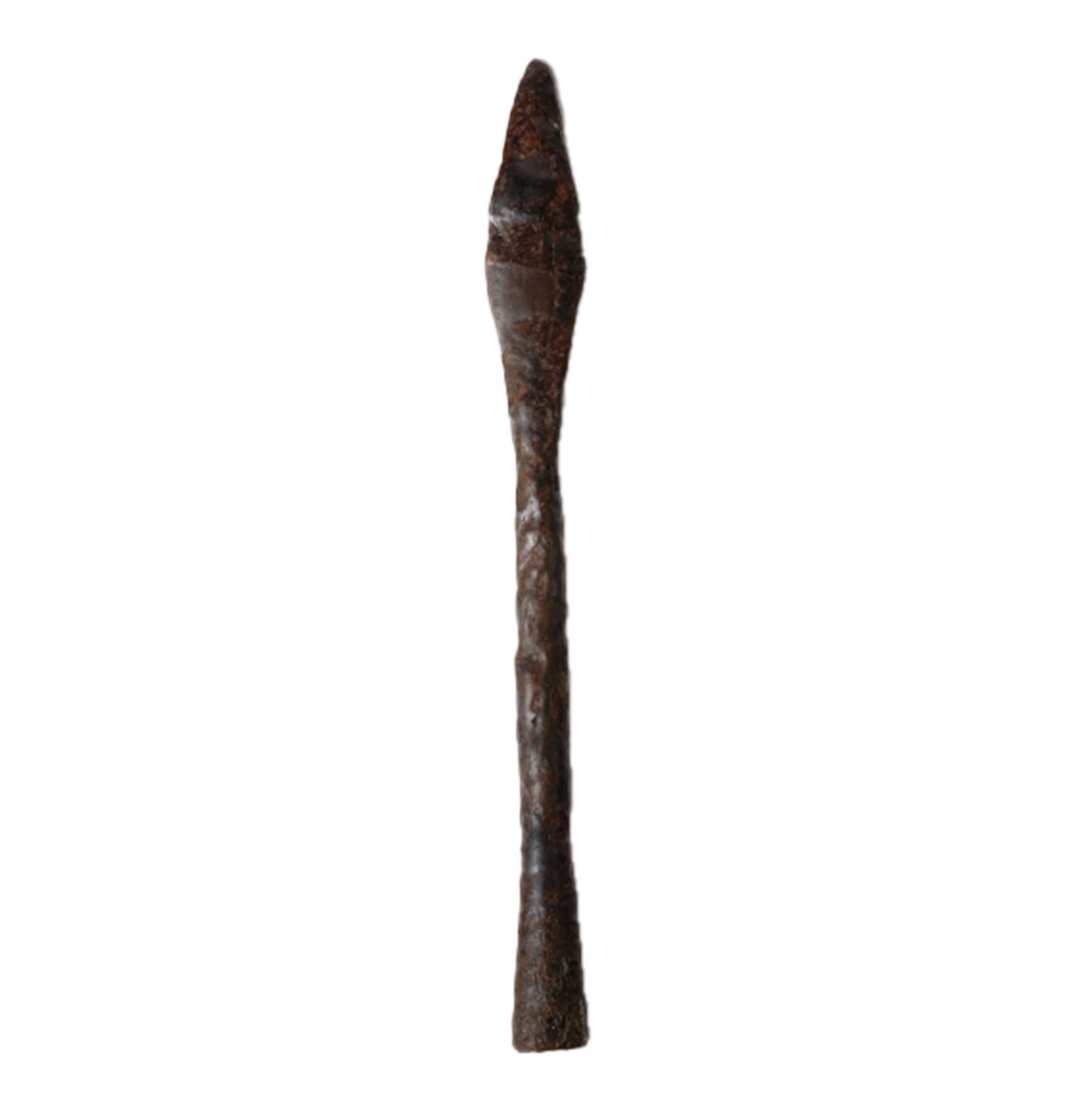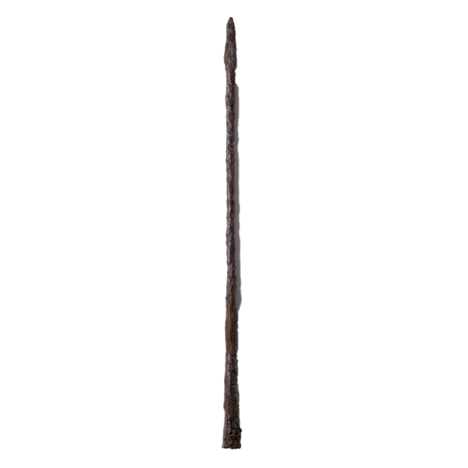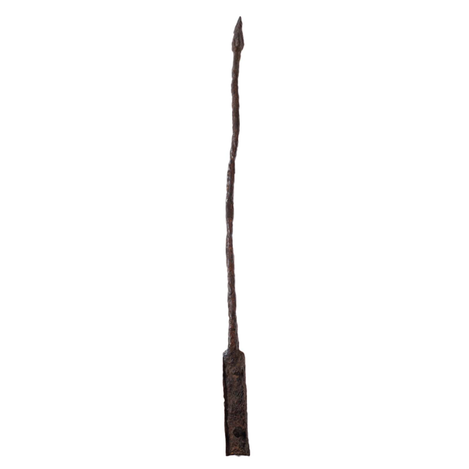 Longitud máxima: 95,1 cm. Vástago: longitud: 65,1 cm; Ø 1,8 cm. Enmangue: longitud: 20,8 cm; ancho: 4,5 cm; grosor: 2,2 cm. Punta: longitud: 9,2 cm; ancho: 2,4 cm.
