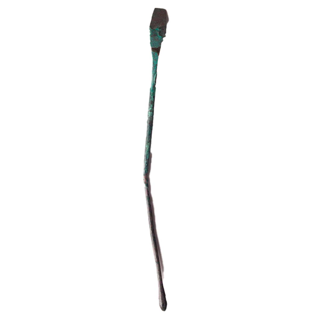 Longitud: 3,7 cm; grosor: 0,35 cm; aguja: longitud: 1,53 cm.